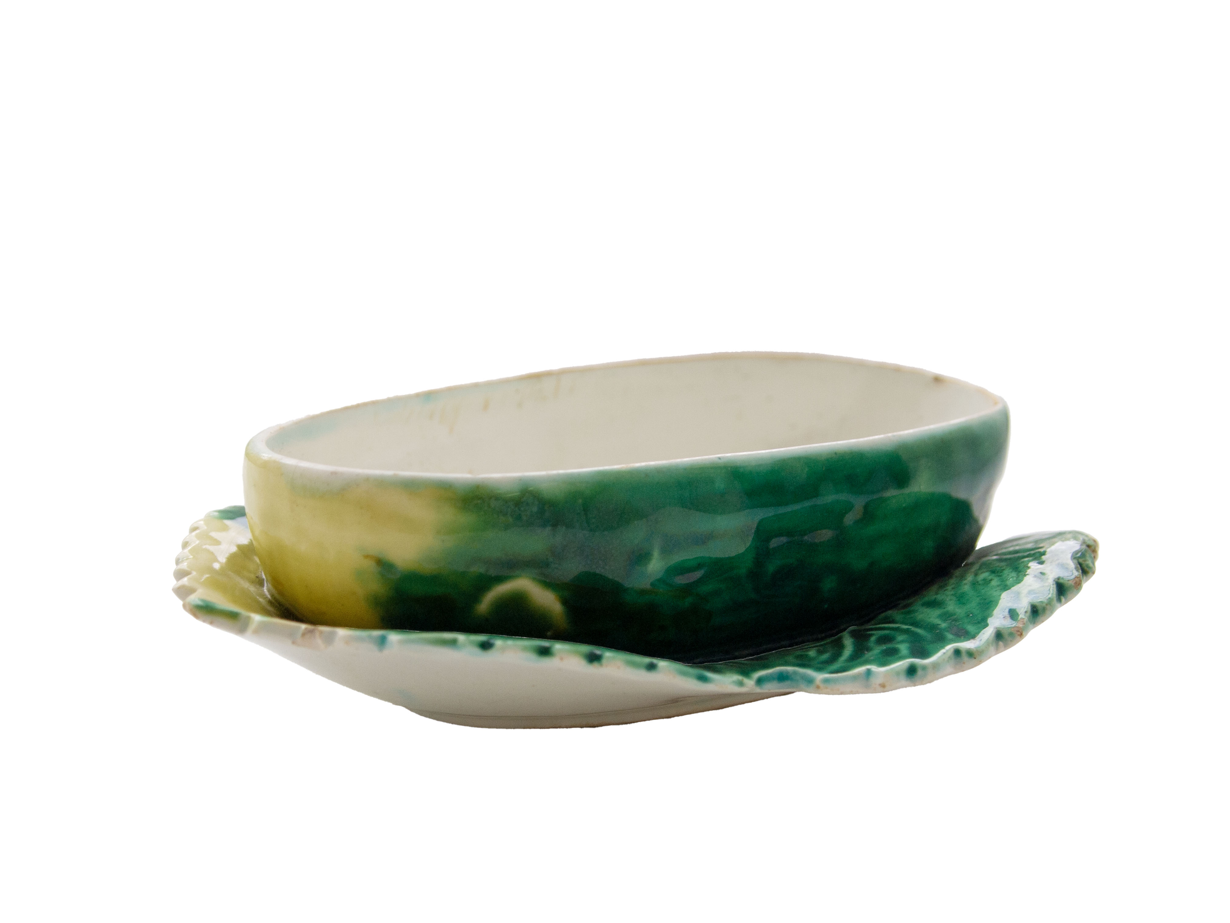 Фаянсовая масленка "Огурец". Товарищество производства фарфоровых и фаянсовых изделий М.С. Кузнецова. Российская империя Кон. XIX – нач. XX вв.