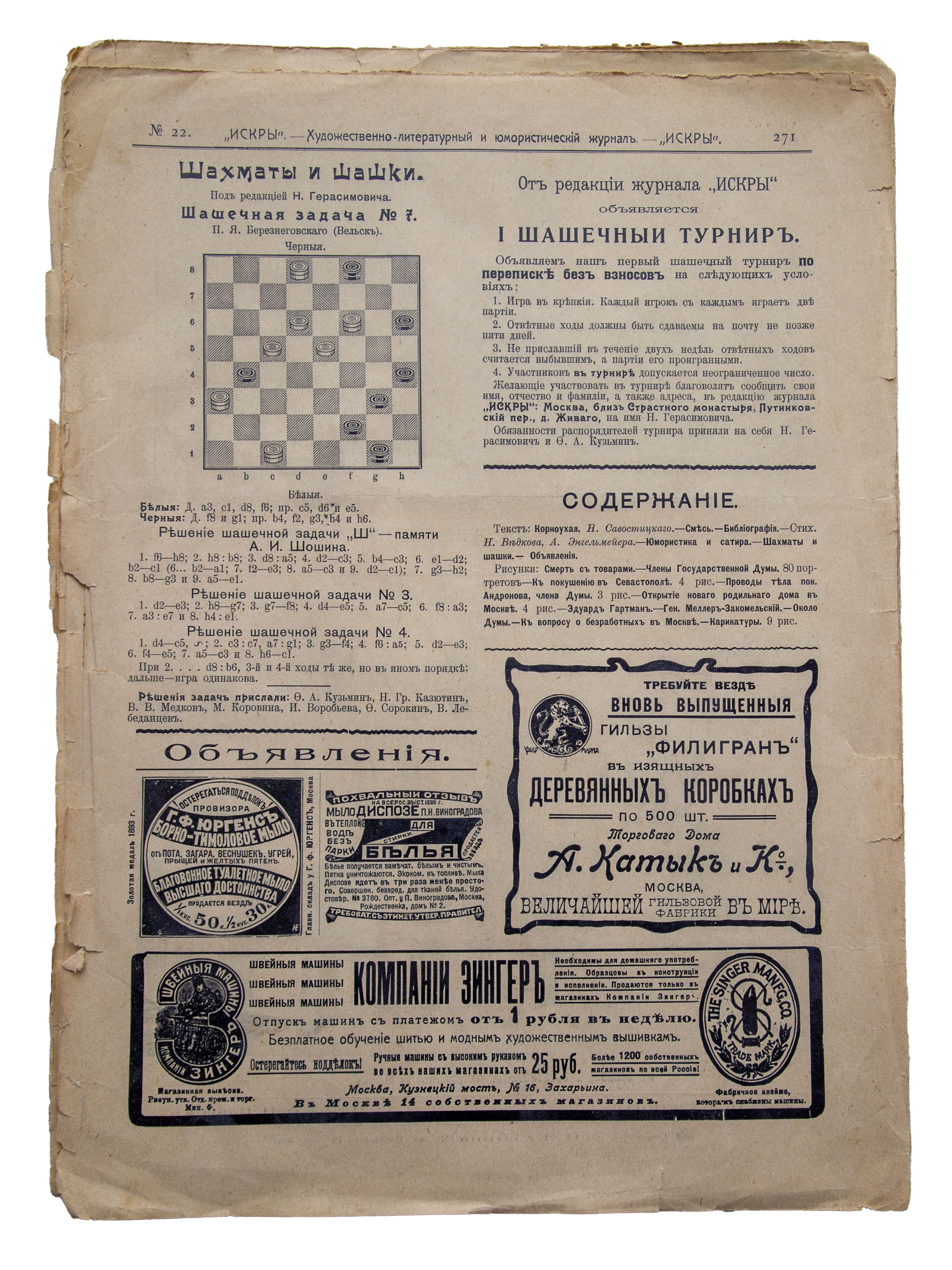 Иллюстративный и юмористический художественно-литературный еженедельный журнал "Искры", №22. Российская империя, Москва 4 июня 1906 г.